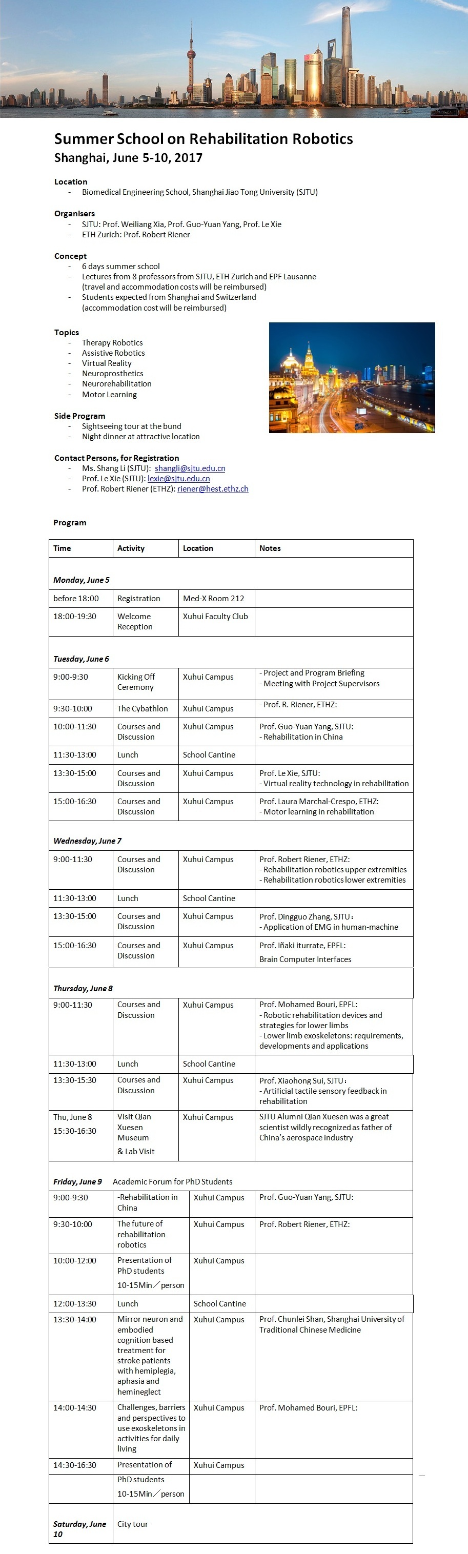 Summer School on Rehabilitation Robotic