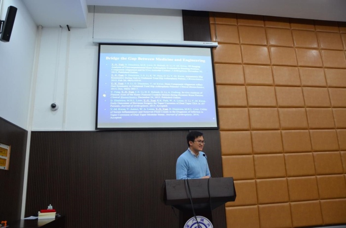 随后,两位特邀教师进行分享报告。蔡宗远以《串连点滴——台北、伦敦、波士顿、上海》为题回顾了自己的求学路程,讲述自己当时选择去美国、英国进行深造的原由与契机,给有意深造的研究生们提供切实有效的建议,并且祝愿大家科研路上一帆风顺。汤耀辉老师分享他从交大到德国马普所到美国斯坦福最后回到交大的科研经历,讲述了他在每一个地方的科研感悟,并从个人经历出发比较了中国、美国以及德国三地做科研的一些差异。报告最后汤老师推荐了《把时间当作朋友》一书,并以过来人的经验告诫大家要珍惜时间。