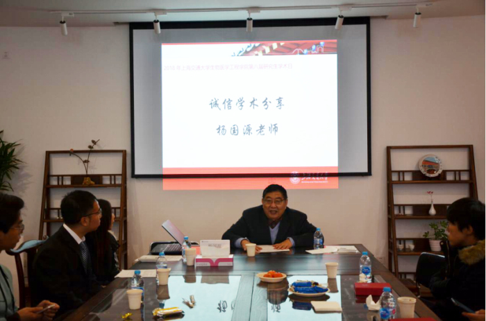 下午,学术日分享茶话会在MED-X研究院一楼会议室举行。首先,杨国源老师进行学术诚信分享,并与同学们讨论学好英语以及提高表达能力在科研中的重要性。分享会中杨老师引用了陈寅恪先生的名言“独立之精神,自由之思想”,鼓励大家在科研学习和日常生活中均要有独立自主的精神,要有自己的思想,敢于质疑权威。杨老师从自身科研经历出发勉励大家要勤奋学习,好好珍惜这三到五年宝贵科研时光。学生们也积极提出自己在学术生涯以及职业道路规划上的一些疑问,杨老师一一耐心解答,发表自己的看法,给出中肯实际的建议,对同学们有很大的指导意义。