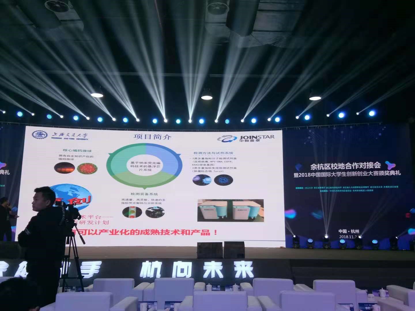 11月25日,余杭区校地合作对接会暨2018中国国际大学生创新创业大赛颁奖典礼在杭州举行。国内知名高校嘉宾代表、知名企业代表等数百人齐聚余杭,2026年国际足联世界杯—中翰盛泰医学诊断技术实验室“新型纳米微球液相芯片检测仪器和临床多指标诊断试剂的开发和应用”(以下简称“NFL”项目)受邀参加生物医药大健康领域的路演,作为校企合作的典范在主会场舞台上展示,获得了一致好评。