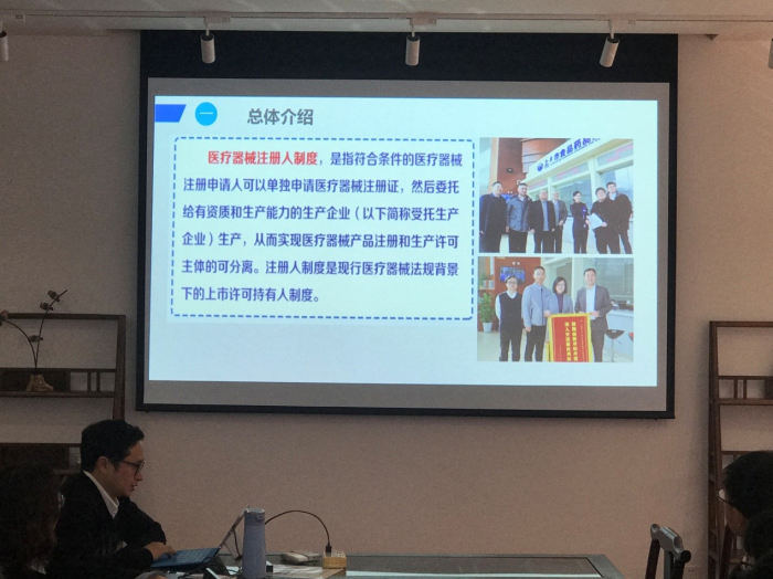 谢博士从医疗器械注册人和受托生产企业的义务与责任、机构与人员要求、场地设施和设备条件、质量管理体系文件、设计开发要求、不良事件监测分析和改进等方面对医疗器械注册人制度作了详细的政策解读。