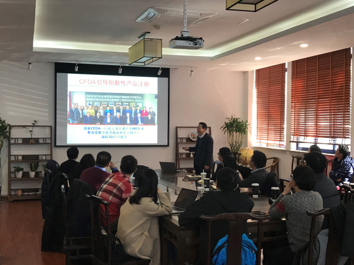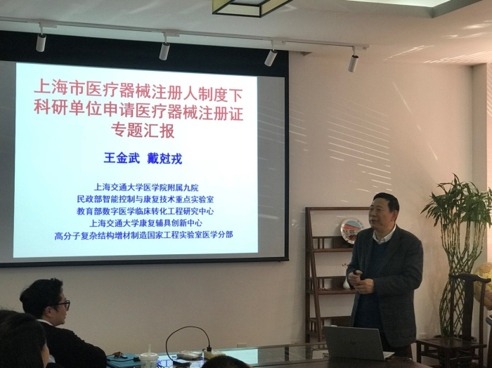 数字医学临床转化教育部工程研究中心的戴尅戎院士、王金武教授团队在2019年初获得全国科研单位第一个医疗器械注册人许可证,是上海市药监部门自启动上海市医药器械注册人制度试点以来,首个由科研机构申请到的医工结合类医疗器械注册证。王教授结合自身的成功案例向大家介绍了科研单位申请注册证的过程、面临的问题以及获批注册证的意义。