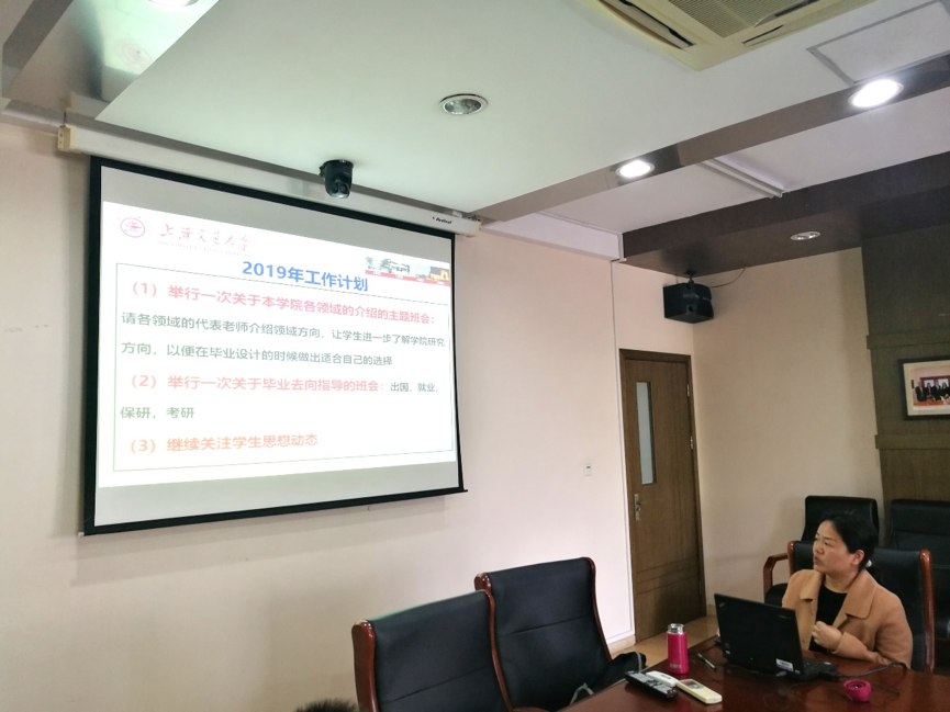 随后,各班主任针对班级具体情况作了本年度工作计划介绍并明确了对学业困难学生的帮扶计划。作为毕业班的班主任,康亚妮就目前需要关注的“安全稳定”事宜,班级毕业集体活动、毕业学生就业指导等工作作了较为详细的计划说明。大三学生正在面临毕业去向选择的难题,李海燕、张素有针对性地开展生涯规划指导活动,为学生拥有更加美好的未来做充分的铺垫与引导。张诗宜、刘苹就目前处于学业困难阶段的学生做了较为全面的现状分析,并计划有针对性地进行帮扶和指导。秦斌杰针对目前大学生普遍存在的学习主动性不够、抗压能力较弱等几个问题做了简要阐述并提出想法,希望通过增加社会生活、志愿公益活动等,多方面丰富拓展学生眼界,增强自信和增加克服困难的勇气。钱晓华计划在“专业志趣引领”方面结合“团改金”活动做专业教师经验分享、企业参观系列活动,他希望通过多次、全面的专业领域介绍能够提高学生对专业的认同感,进而提升学生学院归属感,培养学生的专业使命感和责任担当意识。