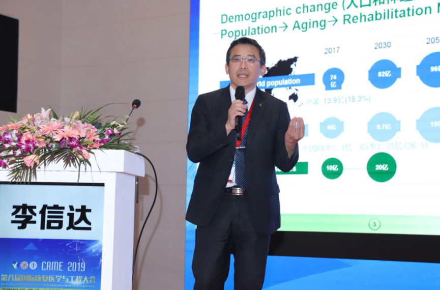 千叶大学先端医工学中心俞文伟教授讲解了“日本康复医工学研究动态”,通过5个其团队的研究项目,介绍了康复医工学、智能医学、大数据等领域在日本的研究状态,拓宽了参会嘉宾的国际化视野。