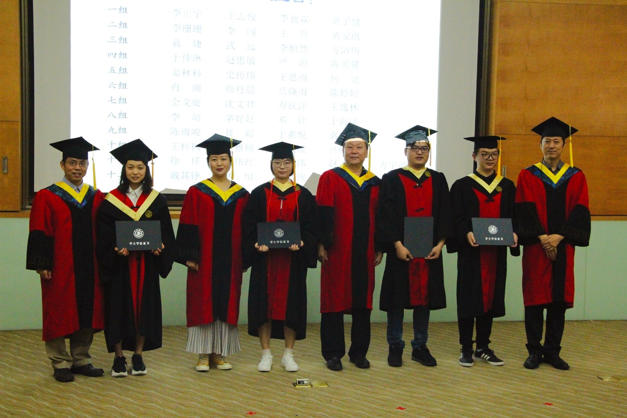 随后,周申申宣读毕业生名单,童善保、柴新禹、沈国峰、刘苹作为导师代表为本科毕业生拨动帽穗并颁发学位证书。