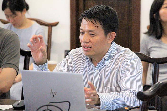 关于学院本科生教学及人才培养国际化相关的工作汇报,童善保副院长首先对近几轮学科评估概况及体系、兄弟院校多项实力指标、校内同等级学科各项能级水平等进行对比分析,他以严抓培养过程质量为重点,细述多个可能的本科教学突破点,探讨了本科生课程评教的相关问题及改善方案;同时,他还剖析了学院国际化办学指标的提升空间及对应举措等。
