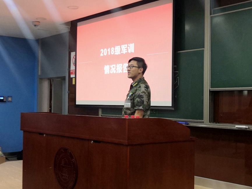 首先,陈龙向与会师生简要汇报了2018级学生军训的总体情况,介绍了小班长集训、学生普训期间的作训内容、“沙场文武榜”的成绩等,并通过照片锦集展示了同学们参训期间的风采。