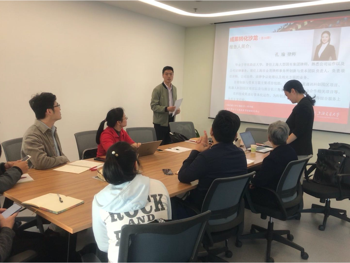 活动伊始,科研办韦建和老师为大家介绍了主讲嘉宾:孔瑜律师,毕业于华东政法大学,曾任上海大型国有集团律师,熟悉公司运作以及公司法律事务。现任上海市金茂律师事务所创新与资本团队负责人,负责项目并购、公司治理、法律争议处理以及相关方面的业务。目前创新与资本方面主要项目包括:北斗数据卫星通讯科创园区项目、机器人科创园区项目以及与部分长三角省市科技园区企业合作相关项目等。在科技成果进行资本化运作、为科创企业提供法律、投资等综合服务上具有丰富经验。