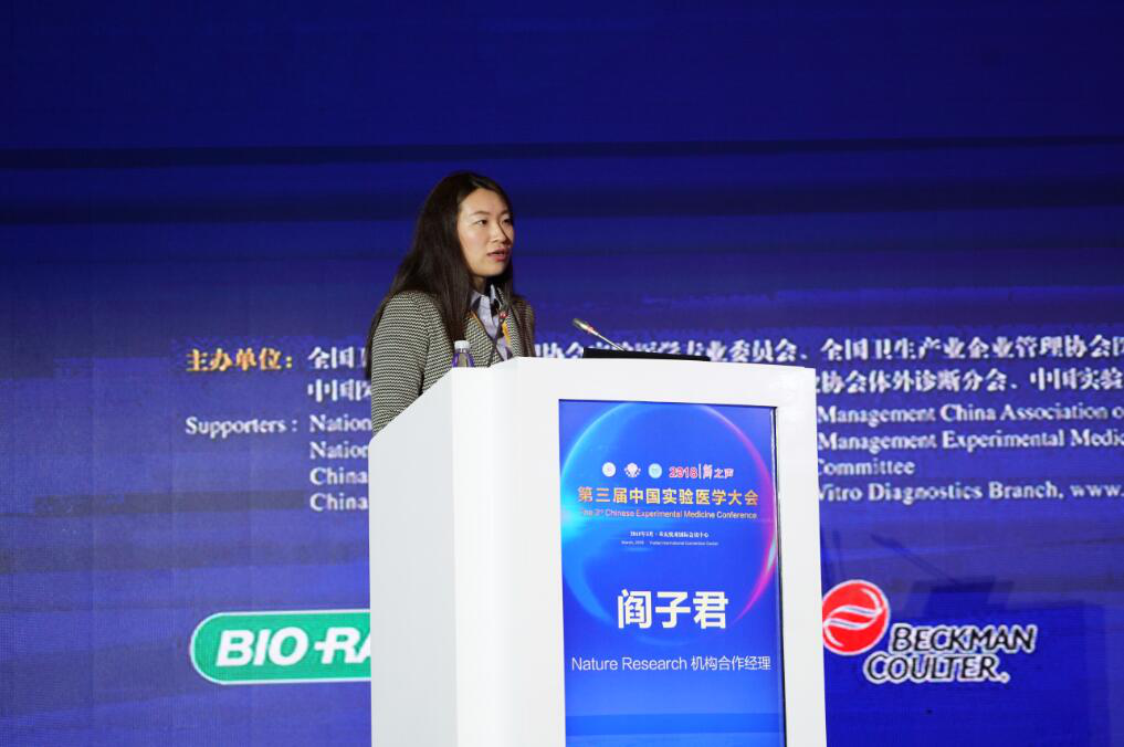 特别来宾Natura杂志上海办事处代表,Nature Research人才服务客户经理阎子君女士对本届大会的成功召开表示了祝贺并表示,2019年将与全国卫生产业企业管理协会实验医学专业委员会合作,在下一届“创之声”大会期间共同举办Nature Conference全球首次举办体外诊断领域高端学术会议——2019 Nature Conference on In Vitro Diagnostics 。