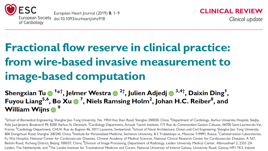 欧洲心脏杂志刊登世界杯官网涂圣贤教授综述:临床实践中的FFR:从压力导丝测量到基于影像的计算