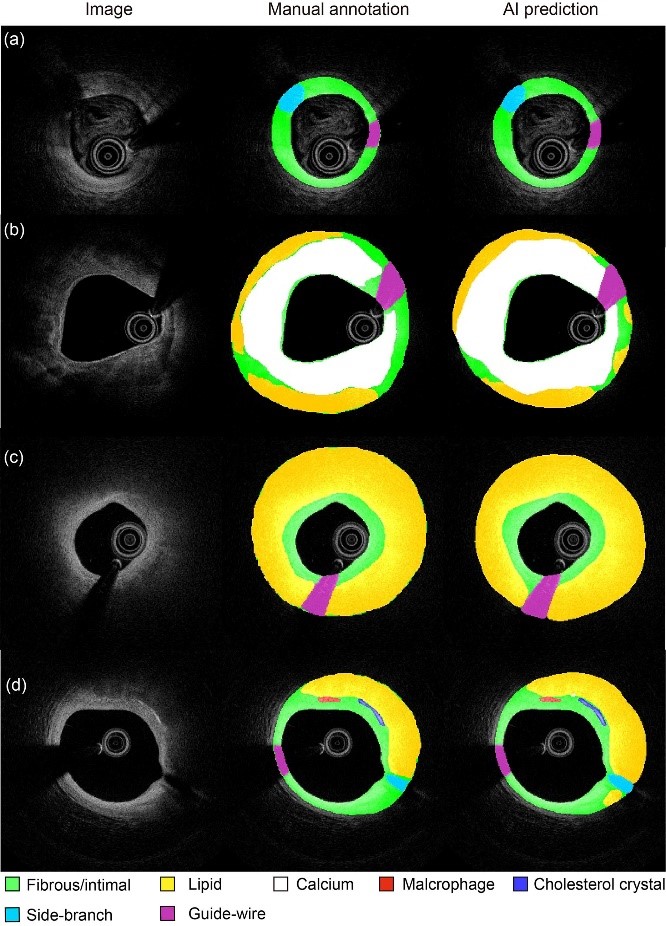 图1. 基于深度学习的OCT斑块自动分割结果与专家标注结果