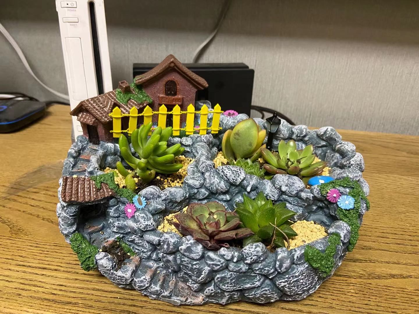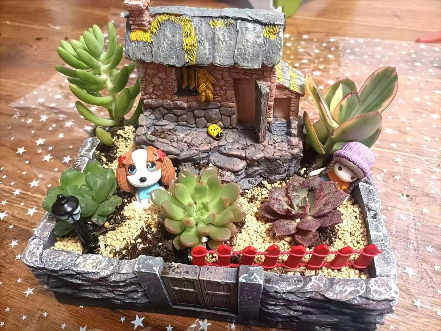 多肉植物种类繁多,有晶莹剔透的玉露、典雅高贵的紫珍珠,还有手指样的小多肉等等。园艺老师耐心地讲解多肉的种类,以及如何浇水、养护,孩子们一边听讲,一遍实践,兴致勃勃地参与到盆栽制作的每个环节。孩子们掌握了将多肉植物移植到各式各样俏皮可爱的花盆房里,并搭配上装饰品。这样一个个赏心悦目的趣味盆栽便映入眼帘,快来看看小生医工人的作品吧!