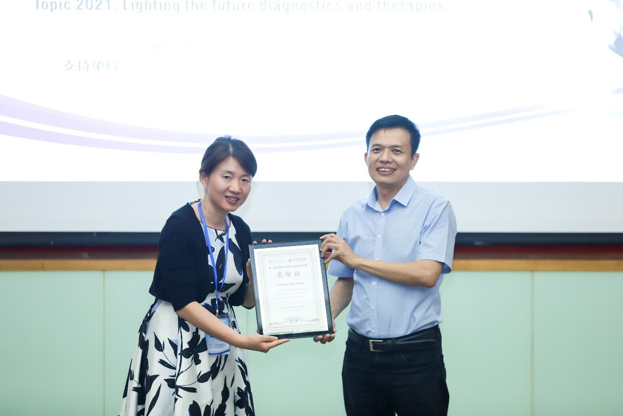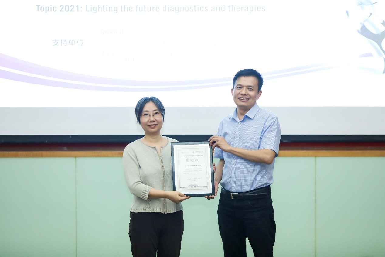 本次作品展的顺利举办离不开合作企业的大力支持,活动中,季波书记向鱼跃医疗、麦迪睿医疗和欧太医疗三家公司表示感谢并颁发感谢状。