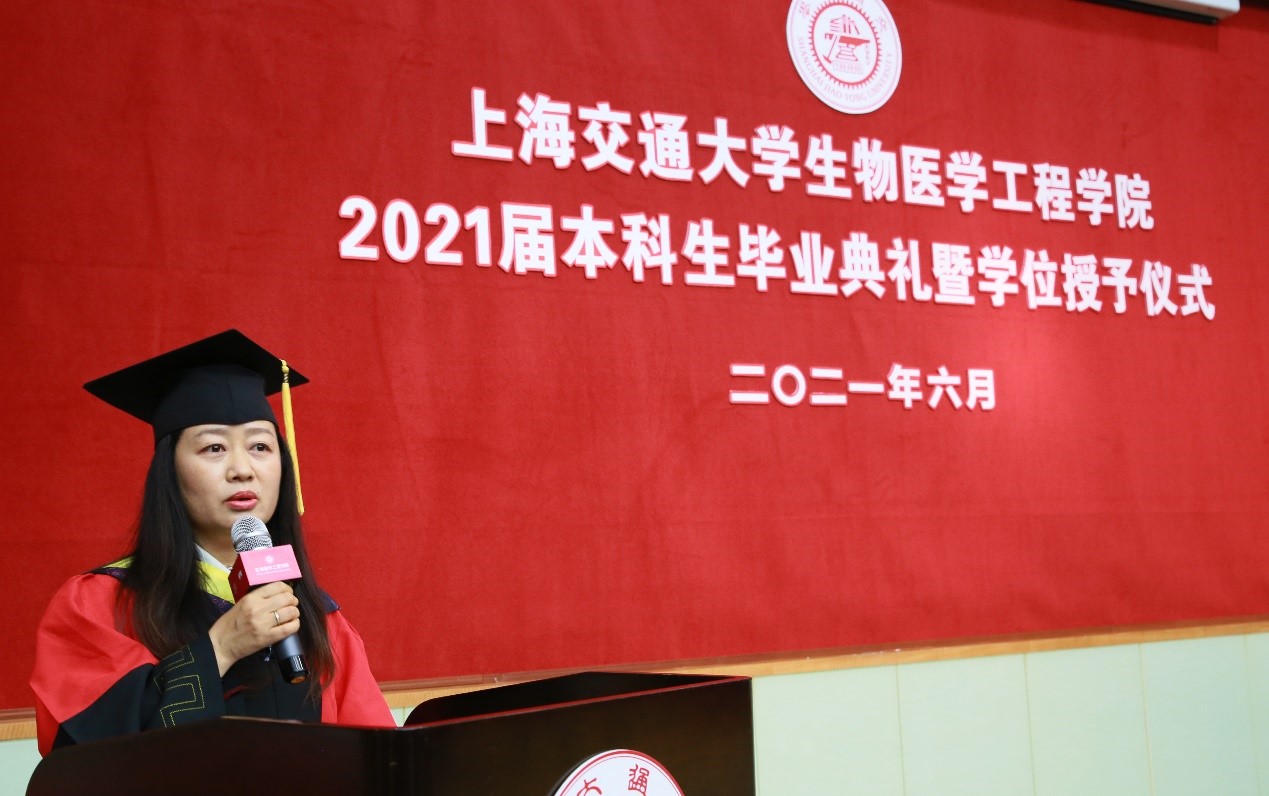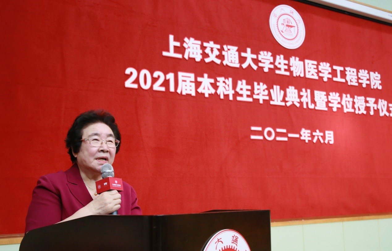 随后,陈亚珠院士为大会致辞。陈亚珠肯定了青年教师在人才培养一线的付出与贡献。同时,她深情回顾了自身在交大求学和工作的点点滴滴,并以一位老学长的身份勉励毕业生们做一个有理想、有信念,不负国家、不负伟大时代的交大人,将青春华章书写在祖国大地上。