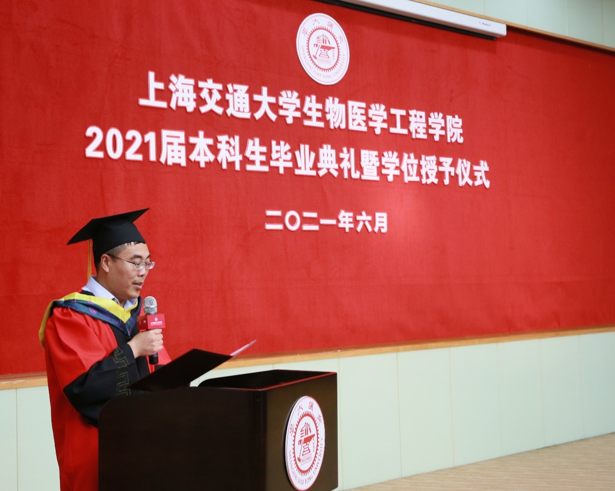 大会伊始,杨广中院长为毕业典礼致辞。杨广中从“厚积薄发,追求卓越”、“立足专业,为人类健康事业有所作为”、“思源致远,带着交大精神奋发前进”三个方面对毕业生们提出殷切希望,期许毕业生们与智者为伍,与善者同行,自强不息,砥砺奋进,成为国家社会顶天立地的中坚力量。