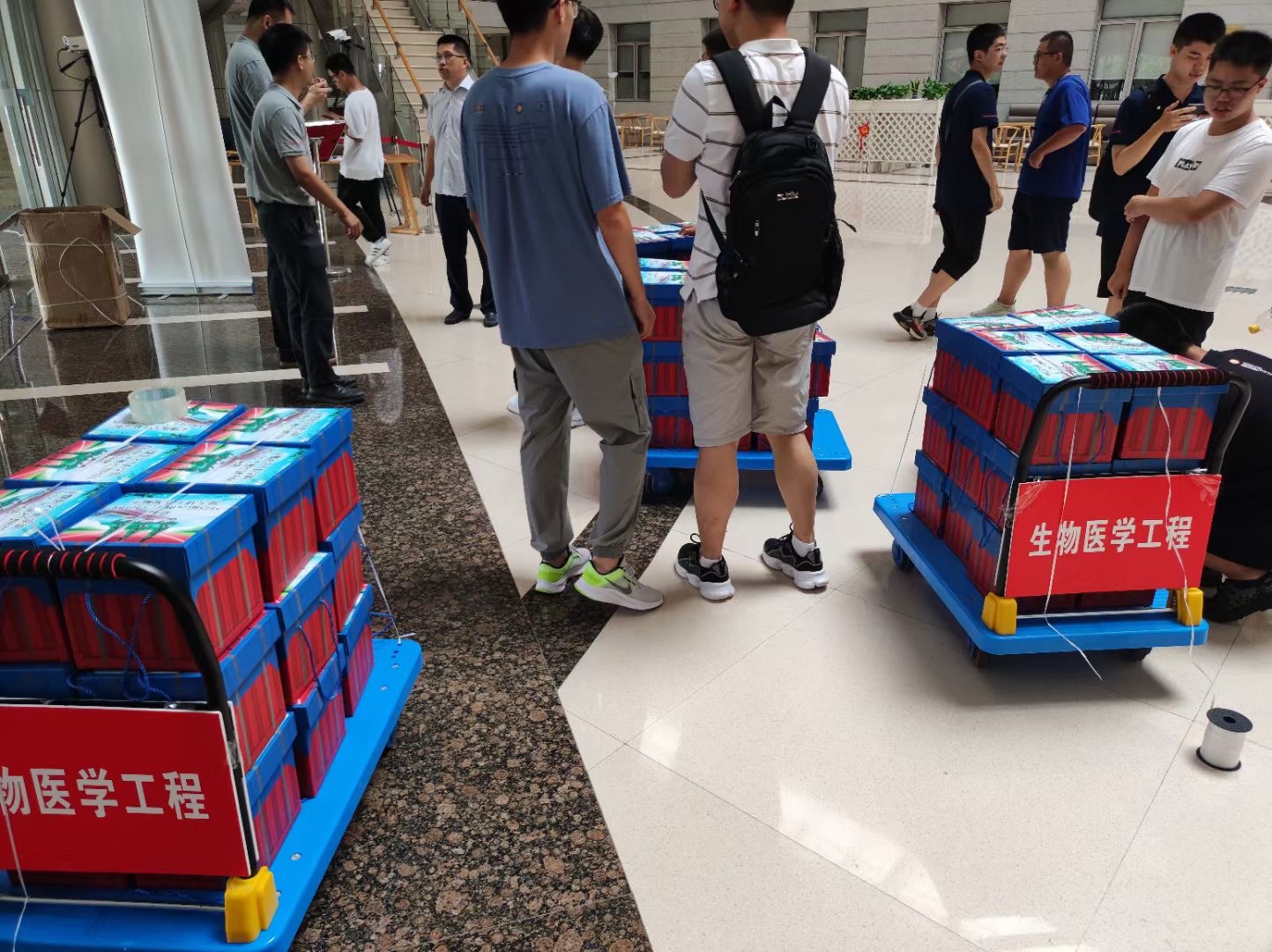 本次军训与以往有所不同,本次是我校自恢复高考后的首次在新生入学前开展军训。本次军训特色活动拉练因为天气原因改为早上进行,故不再集合进行中期慰问。由思政教师及学生志愿者将慰问品送至学生寝室。院党委副书记孟祥琦与同学们亲切沟通交谈。