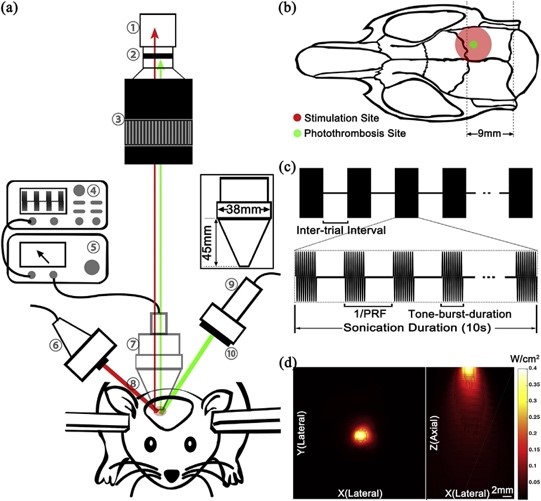 4. Li H, Sun J, Zhang D, et al. Low-intensity (400 mW/cm2, 500 kHz) pulsed transcranial ultrasound preconditioning may mitigate focal cerebral ischemia in rats. Brain Stimulation, 2017, 10: 695-702.