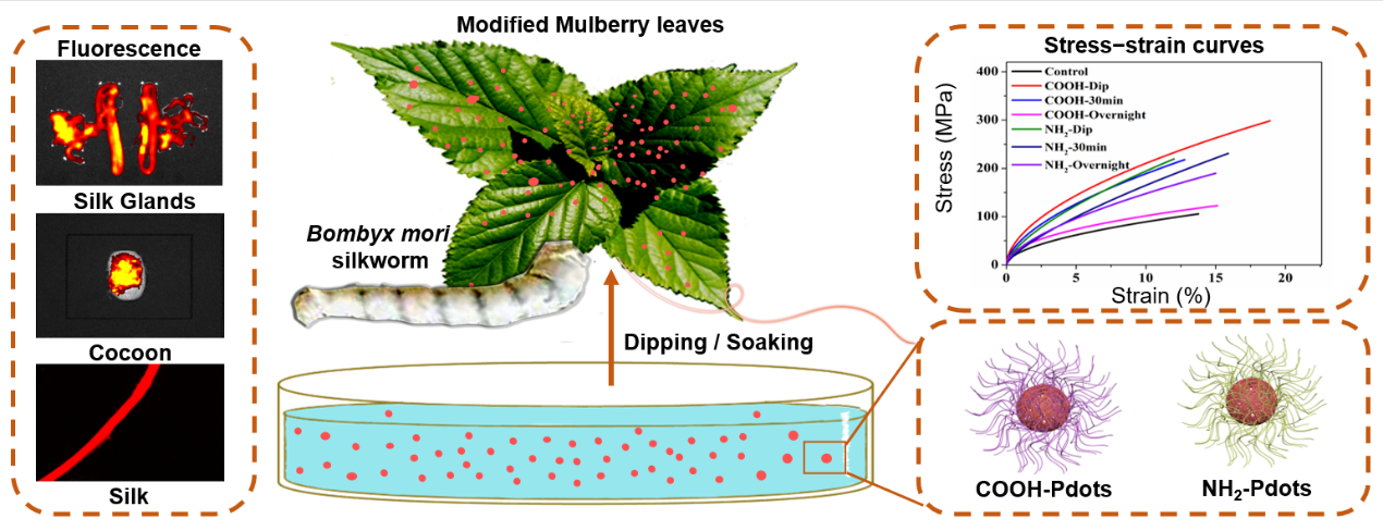 Jingru Li, Yuqiao Li, Shuting Lu, Juxiang Zhang, Chunfu Zhang, Liqin Xiong*, DualPerformance Optimized Silks from UltraLow Dose Polymer Dots Feeding and Its Absorption, Distribution and Excretion in the Silkworms. Adv. Fiber Mater., 2022. https://doi.org/10.1007/s42765-022-00147-6
