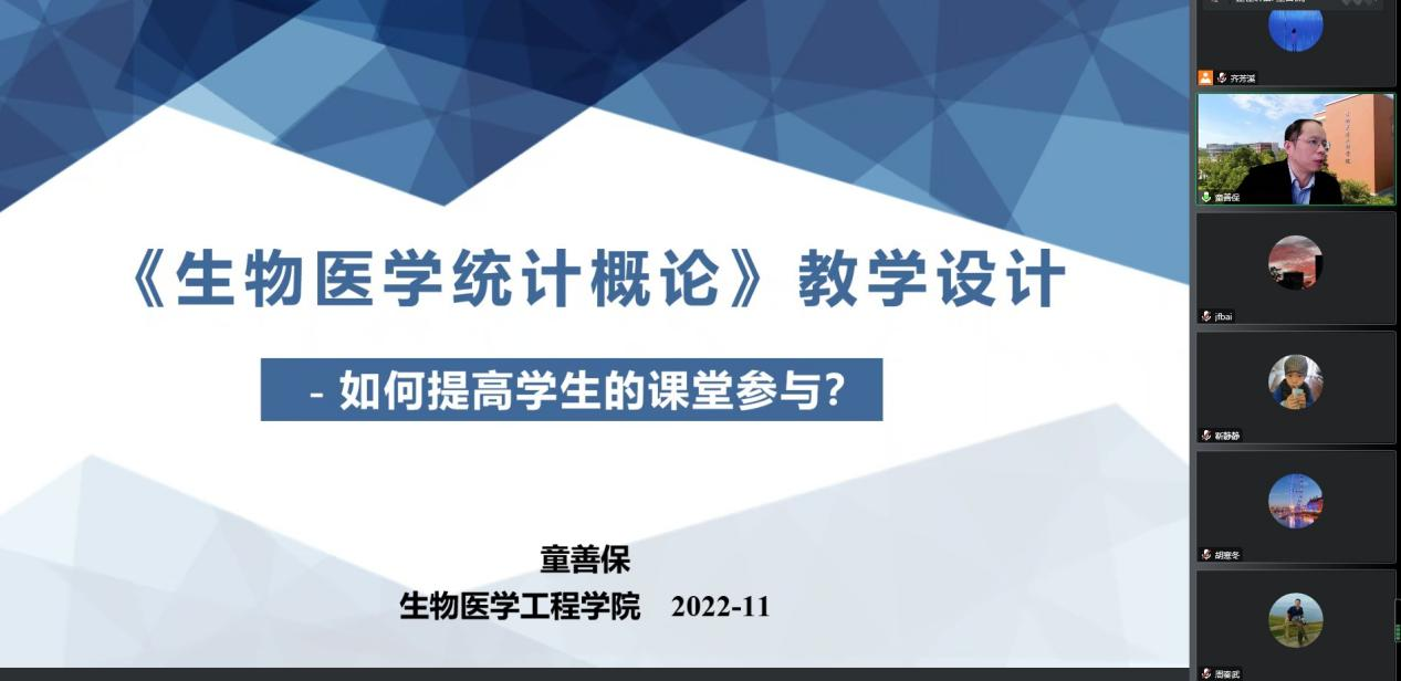 围绕“如何提升学生课堂参与度”的主题,童善保教授以《生物医学统计概论》教学设计为案例,从课程改革、教学方法改革、教学改革成效三个维度对其进行详细解读。他指出,教学改革的创新思路是向教育学家们学习、以“学习效果”为中心,通过更换教材、修订大纲、课件优化、课堂互动、收集学生反馈等途径提升“教”的方法。始终坚持以学生为主体的课堂教学,童教授结合自身教学经验和感悟细致分享了改进教学技巧的若干建议。