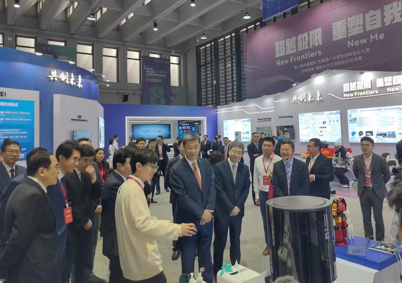 据悉,赛后金成老师和孟祥琦老师作为获奖代表随同教育部党组书记、部长怀进鹏,重庆市领导罗蔺、张安疆,一同参观了往届“互联网+”金奖项目创新创业成果展,为第九届“互联网+”大赛做充分的准备。