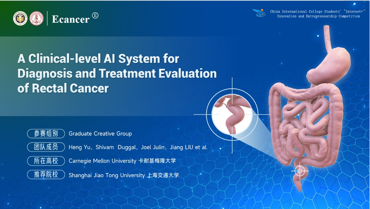 项目简介:本项目是针对直肠癌诊断治疗中的三大痛点,即新辅助治疗是否达到病理完全缓解,免疫疗法是否达到病理完全缓解以及是否执行保留肛门手术,利用联邦学习整合多医疗机构患者全维度数据开发临床级别AI系统。项目立足于卡内基梅隆大学和斯坦福大学,项目发展得到了包括全球著名放射肿瘤学家Maximilian Diehn、杨广中等的密切关注和悉心指导。目前已在美国硅谷和上海成立医学AI工作室,并与国内外多家医院和癌症研究中心深入开展产学研合作。项目成果受到路透社、Google、央视网等十余家世界主流媒体重点关注;核心技术成果文章(Nature Communication)累计下载量近万次;AI系统在中山大学附属六院的临床测试中取得优异结果,引起社会广泛好评。