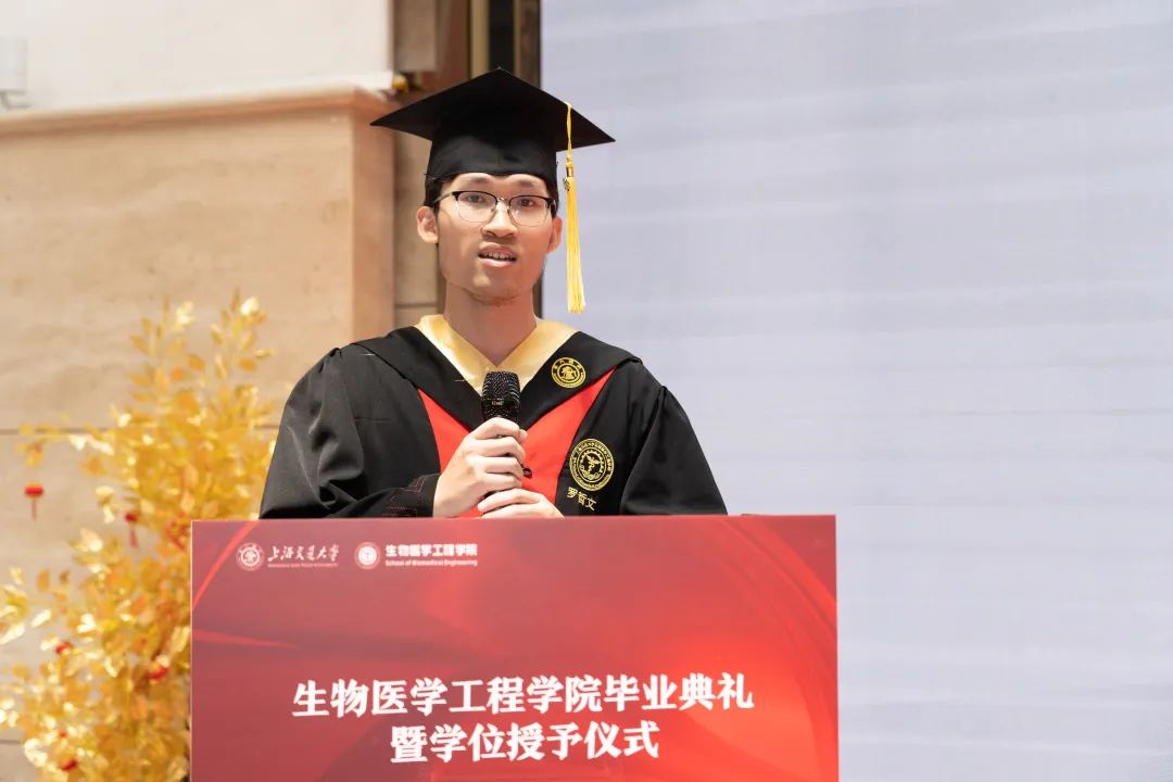 罗哲文代表2023届本科毕业生进行发言。他以四年前入学时,前任校长林忠钦在开学典礼上的寄语“归零”为题展开,呼吁同学们不要受到过往经历的束缚,也不要沉溺于已取得的成绩,用全新的自己去开启下一段旅程,去迎接人生的各种可能性,但行好事,莫问前程!