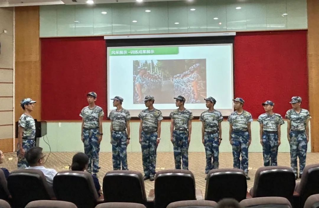 军训成果展示环节,一营8连的部分参训同学向各位参会人员展示了训练成果。同学们步伐坚实且统一,口号响亮而清脆,体现了2023级本科同学们的精神风貌。