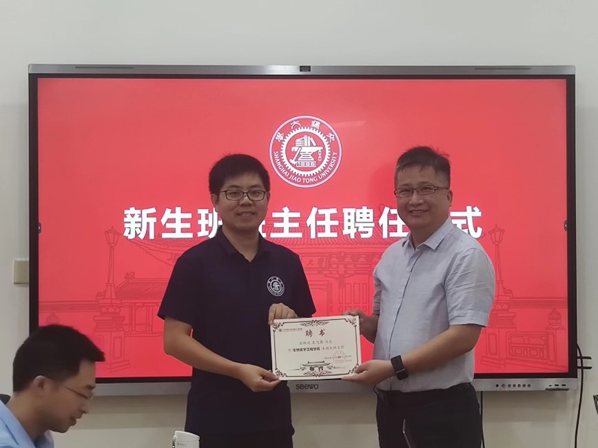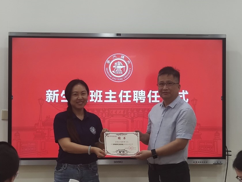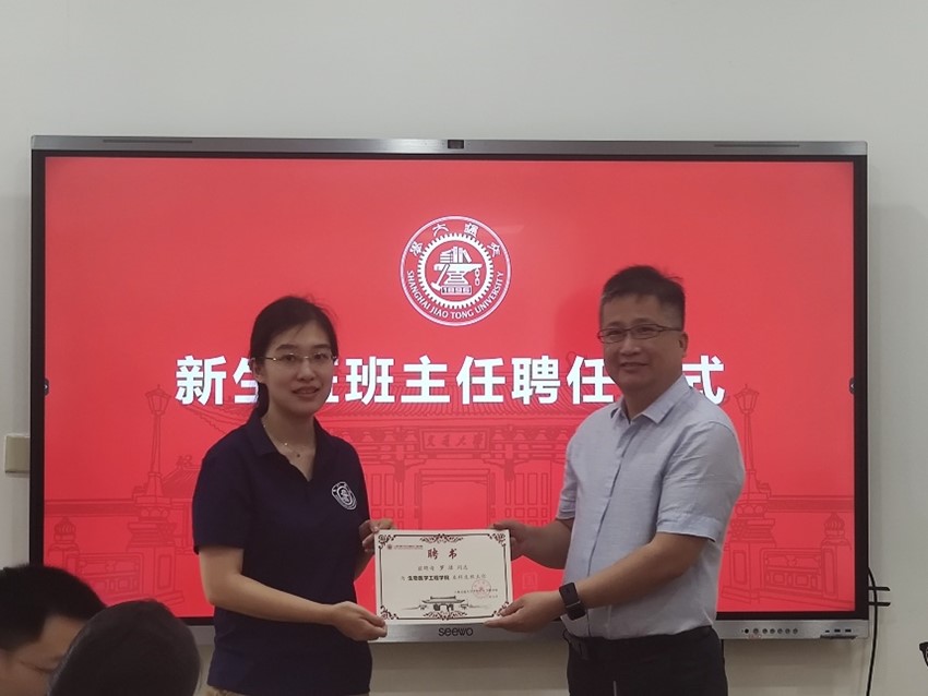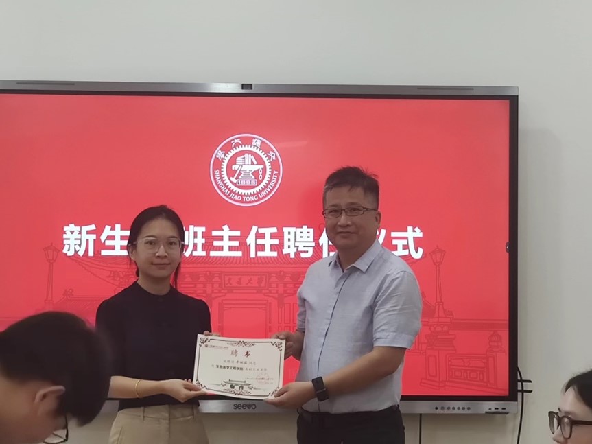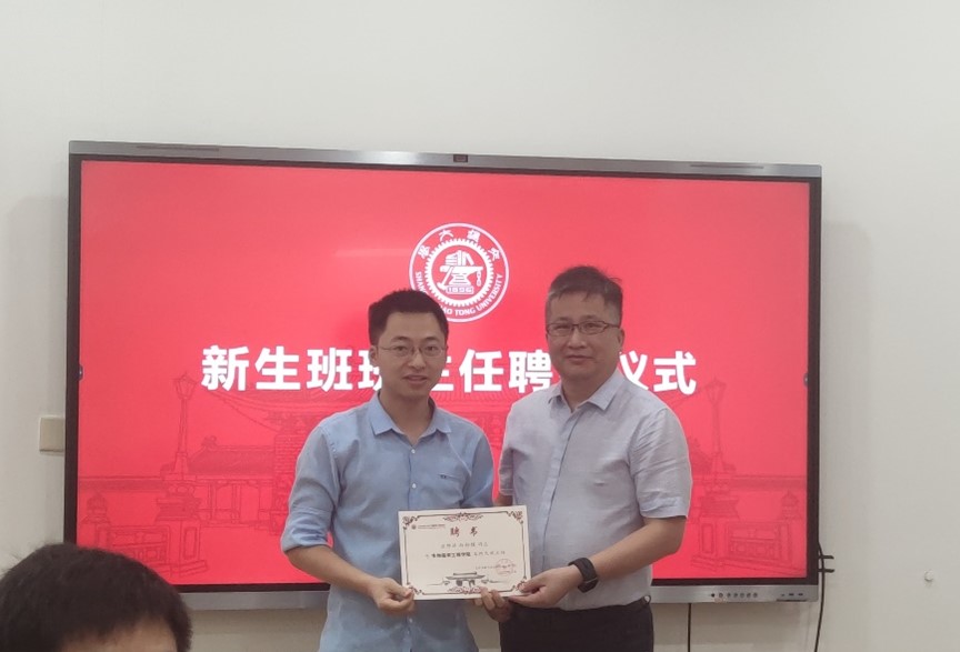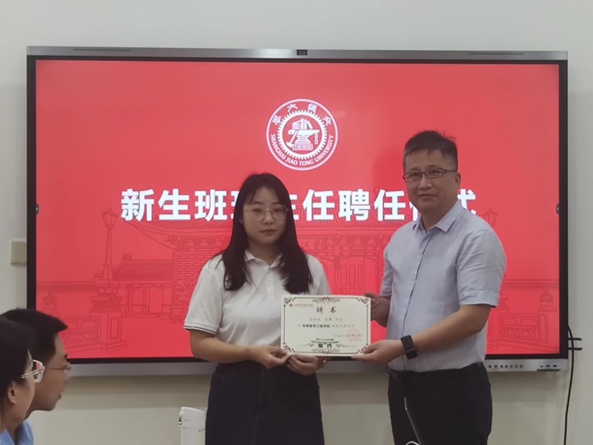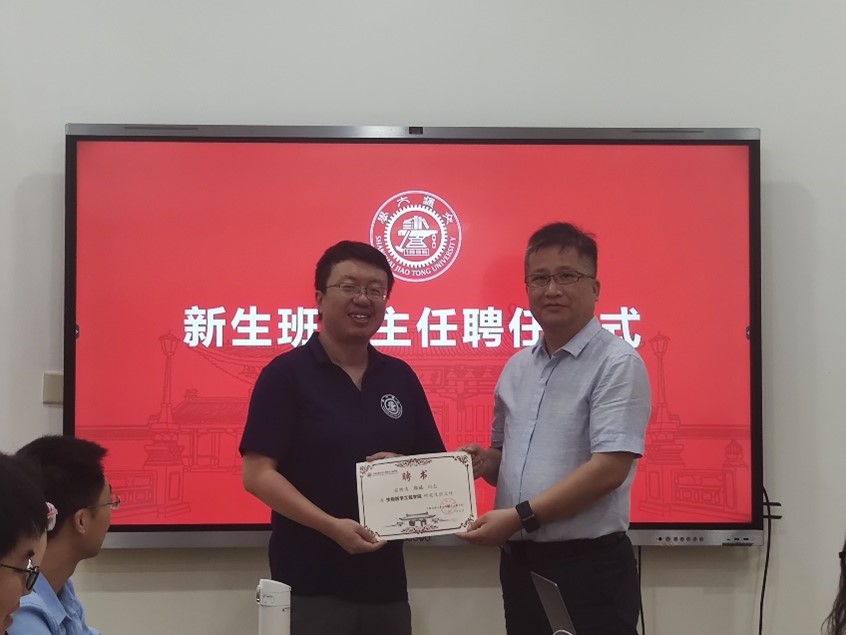 在新生班班主任聘任仪式中,孟祥琦代表学院党委宣读了聘任决定,陈江平为新任班主任颁发聘书。