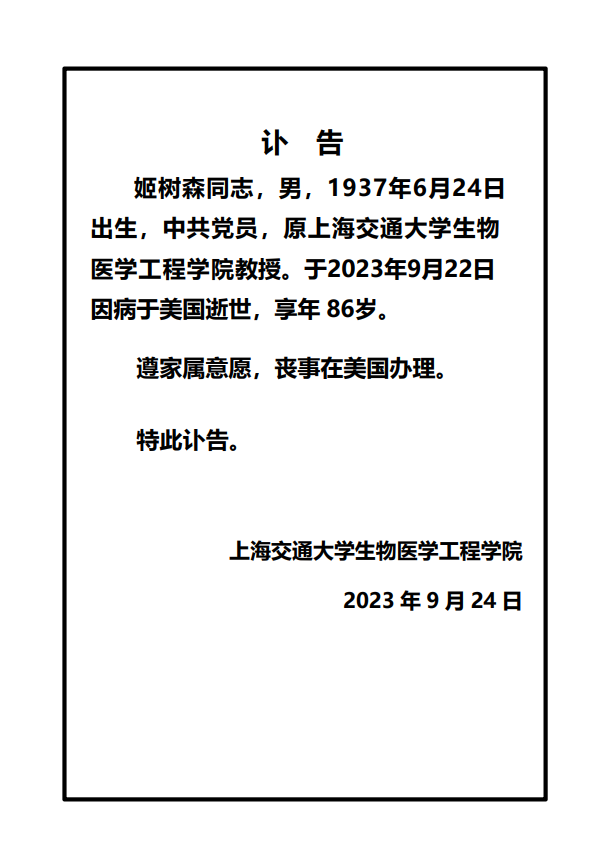 姬树森同志热爱祖国、治学严谨、甘于奉献、谦虚正直、待人诚恳,与人为善的优秀品质,永远值得我们学习和发扬。