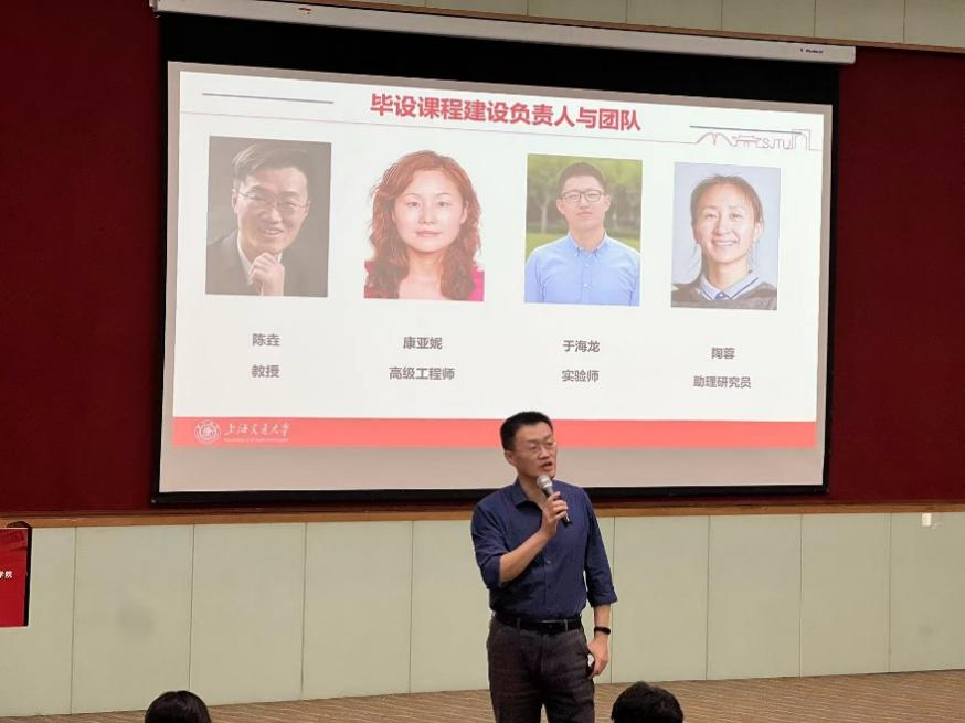随后,陈垚老师介绍了毕设课程团队成员,强调了毕业设计的重要意义,详细说明了本科毕业设计(论文)课程简介、课程目标、学院职责、成绩构成、进度安排、关键时间节点等同学们密切关注的各个事项。