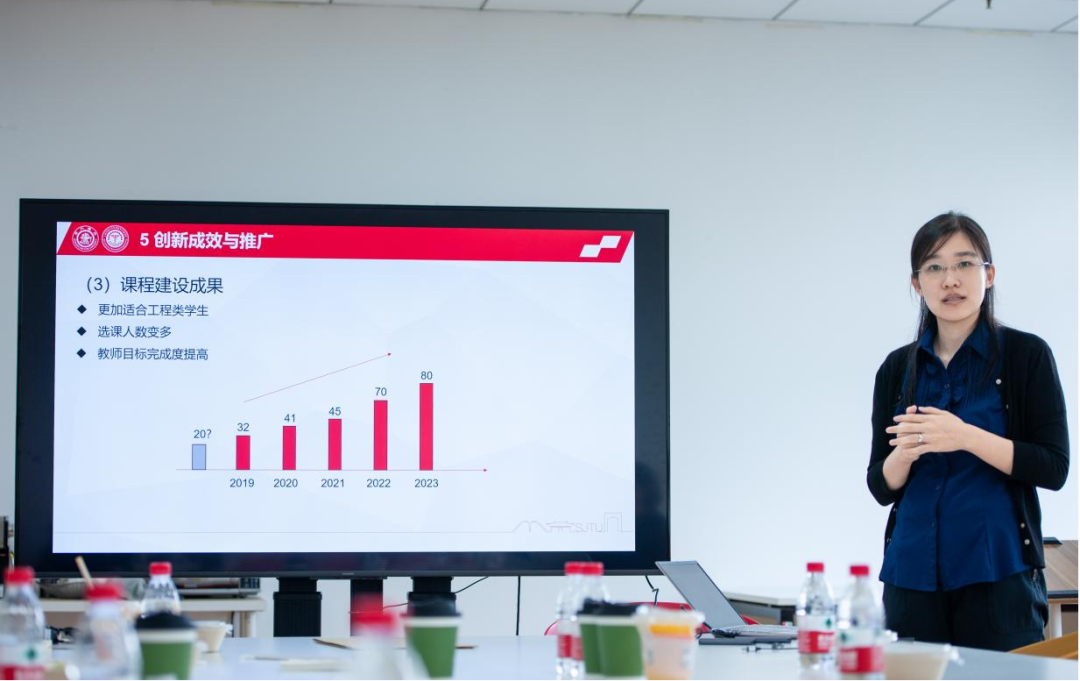 三名参赛教师精心准备了教学设计方案,围绕专业课程简介、教学痛点分析、创新举措设计、课程思政建设、创新成效评价等,分别进行了15分钟的教学创新设计汇报,并分享了与学生互动、提升学习效果的各种方法举措。