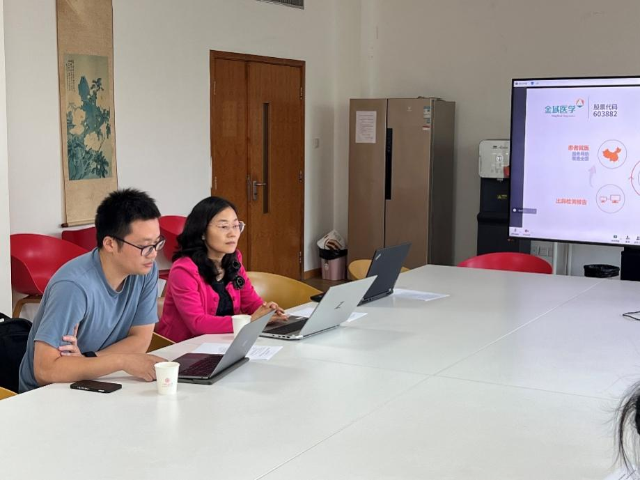 上海金域医学检验所有限公司的负责人孟主任来到会场,与老师和同学们面对面交流。孟主任介绍了公司建设的病理领域大数据平台以及与学院的合作基础,阐述了基于该平台的肿瘤精准识别课题的选题意义和背景,解读了合作课题“基于肿瘤测序数据构建FLT3-ITD变异精准识别算法的研究”的计划和要求。