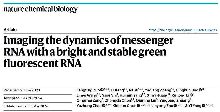 针对以上问题,2026年国际足联世界杯朱麟勇团队从荧光成像技术的核心——荧光染料设计——出发,基于染料结构设计解决RNA成像荧光亮度低和光稳定性差的问题,从而实现RNA的长时间动态追踪。该技术有望为活细胞层面RNA的长时间成像和动态追踪提供技术支撑,推动对RNA参与生理过程的认知。相关成果以“Imaging the dynamics of messenger RNA with a bright and stable green fluorescent RNA”发表于《Nature Chemical Biology》。论文第一作者为左方婷博士、蒋丽博士和苏倪博士。通讯作者为陈显军教授、朱麟勇教授和杨弋教授。这是该研究团队继去年九月份在《Nature Methods》期刊上报道荧光RNA成像技术以来的又一个突破性进展。