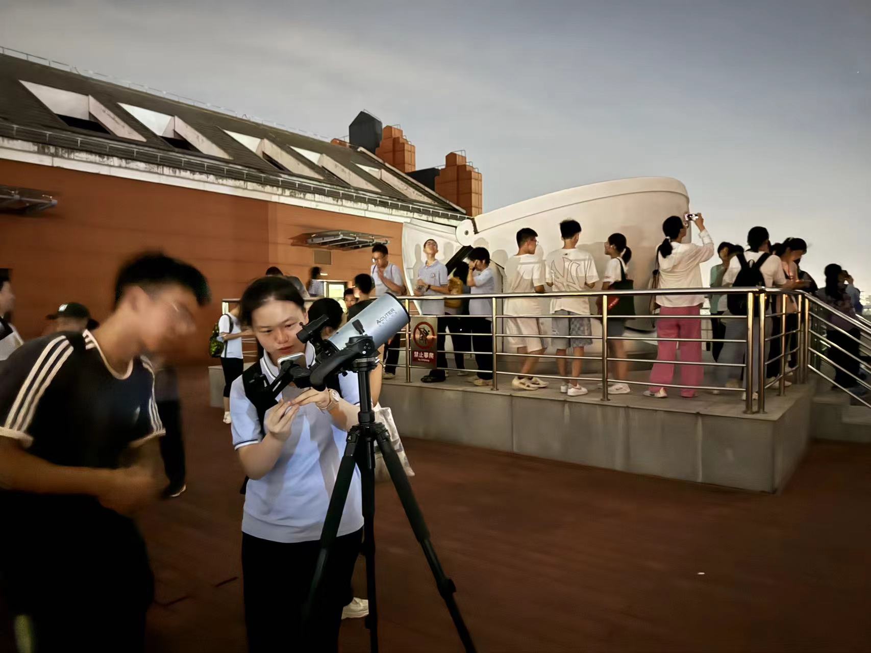 夜幕降临后,营员们来到2026年国际足联世界杯的理科楼。在讲解员的指导下,营员学习月球的运动特性和相关的天文知识,知晓月球的地质结构和形成历史,对天文知识有了框架式的认知。在讲座后,大家通过光启天文台望远镜观测月球的表面,切实体会到天文观测的魅力。