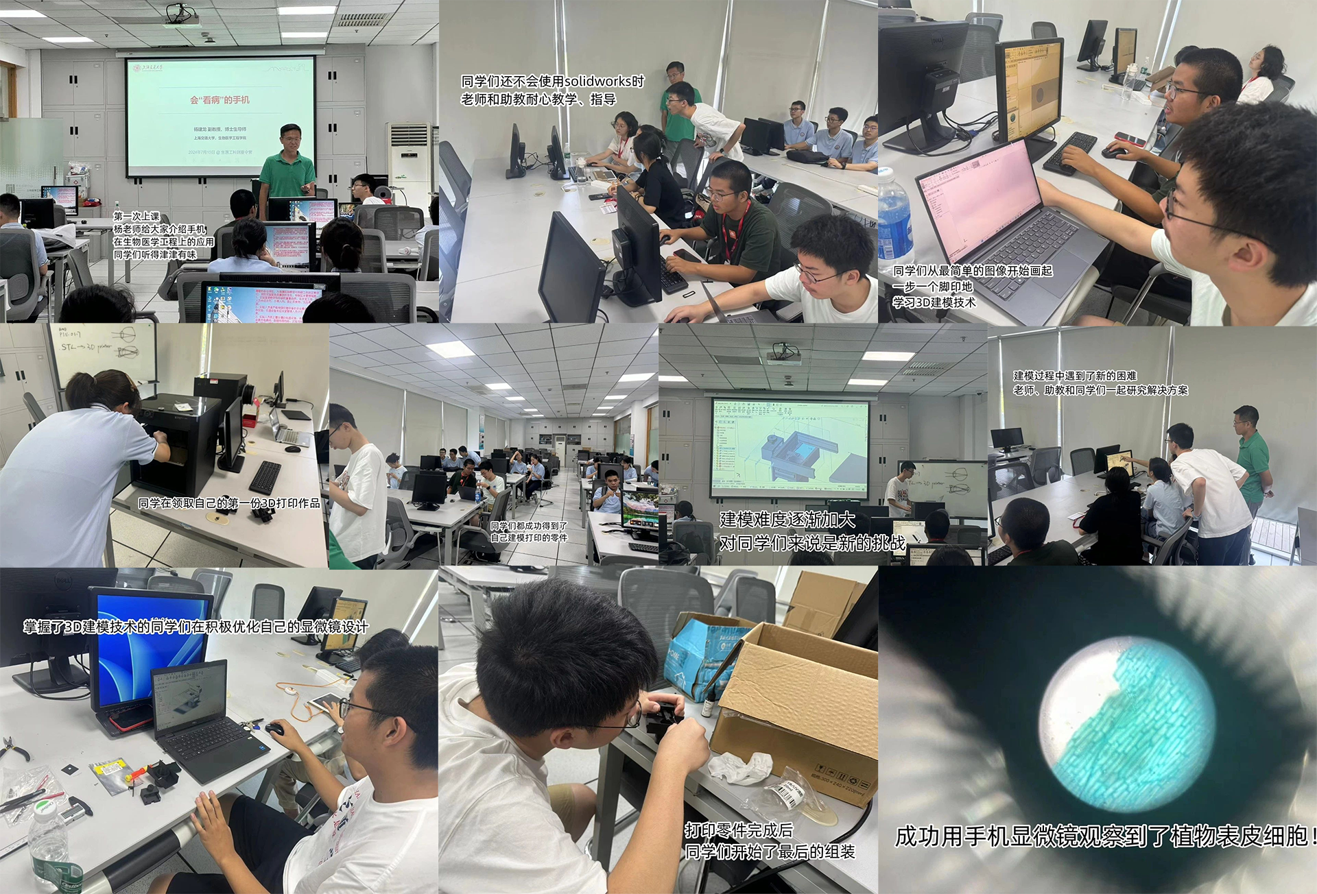 我看到同学们一早来到实验室,却又很晚不肯离去;不停地提问、建模,尝试手机显微镜设计的新方案,提出自己的创造性想法。这种求知若渴、勇于创新的精神令人钦佩。看到这样的场景,我想,这次夏令营的意义也正在于此:让大家亲身体验科研的乐趣与挑战,激发对科学的热爱,培养创新思维和解决问题的能力。