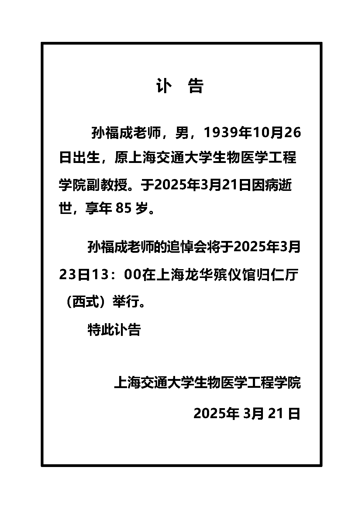 孙福成老师生平介绍