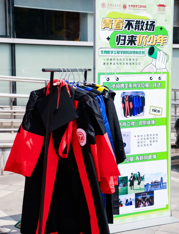 文选医学大楼前,学院为校友们准备了学士服供校友拍照留念。镜头下,校友们或并肩而立,重现当年毕业场景,或携家人合影,创造美好校园回忆。