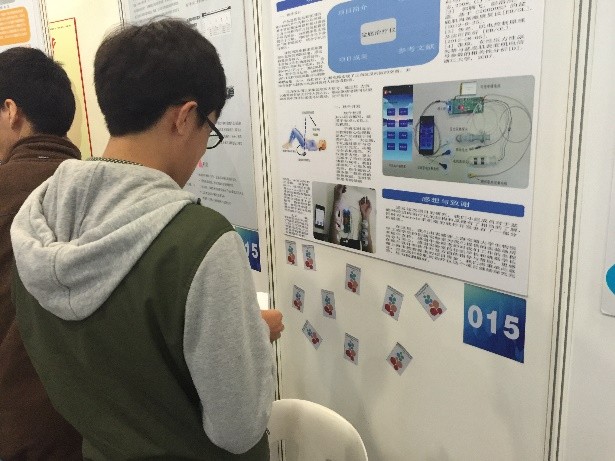 该项目引起了许多参展人士的兴趣,不少人驻足观看项目展示,也有很多评委老师前来详细询问项目的内容和创新思路。组员对每位感兴趣的老师和同学都予以悉心的讲解,解答他们的疑惑,同时也接受了老师们提出的好的想法和建议,收获颇丰。