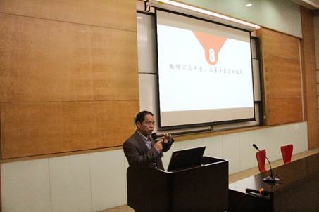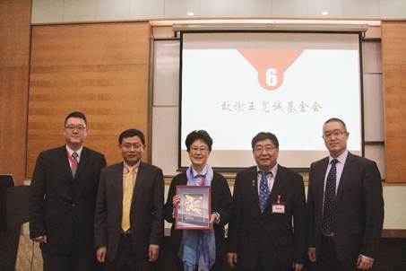 高维强、杨国源为王宽诚基金会代表赠送礼品,一幅“桃李满门”表达了学院对王宽诚先生一如既往支持祖国科教事业的钦佩之心,同时也是学院对王宽诚基金会多年来给予支持的感谢。