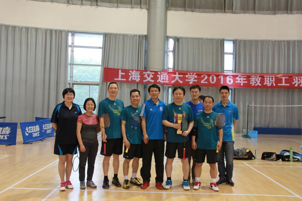 参加本次活动的共有32家单位,分成甲乙两组进行比赛。世界杯官网组建了一支强劲的羽毛球战队,有柴新禹、杜一平、童善保、涂圣贤、陈垚、张爱丽、熊丽琴、康亚妮和王蓓老师。赛前,各位老师在繁忙的工作中抽空练习、积极备战;赛中,大家分工明确、团队协作、奋力拼搏;5月28日上午,通过三场循环赛的角逐,我们以小组第一名的成绩顺利出线,晋级前八强;6月1日下午,又经过三场激烈的淘汰赛,顺利晋级前四强;在最后争夺冠军的比赛中,大家的体能已经消耗殆尽,但是仍咬紧牙关、顽强拼搏,最终战胜对手,捧得冠军奖杯。赛后,校工会张杰副主席为世界杯官网羽毛球队颁奖并合影留念。