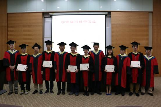 随后,赵俊宣读被授予学位的毕业生名单,古宏晨、童善保、殷卫海、陈垚、涂圣贤等老师作为导师代表为同学们颁发学位证书,并与同学们合影留念。