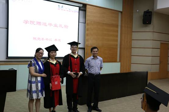 最后,季波和周申申代表学院为学生送上名为“母院与你共心跳”的毕业礼物。季书记从自己多年来的工作经历和感受寄语学生,希望大家今后能学会发现身边的感动,感受正能量,在人生路上勇往直前。